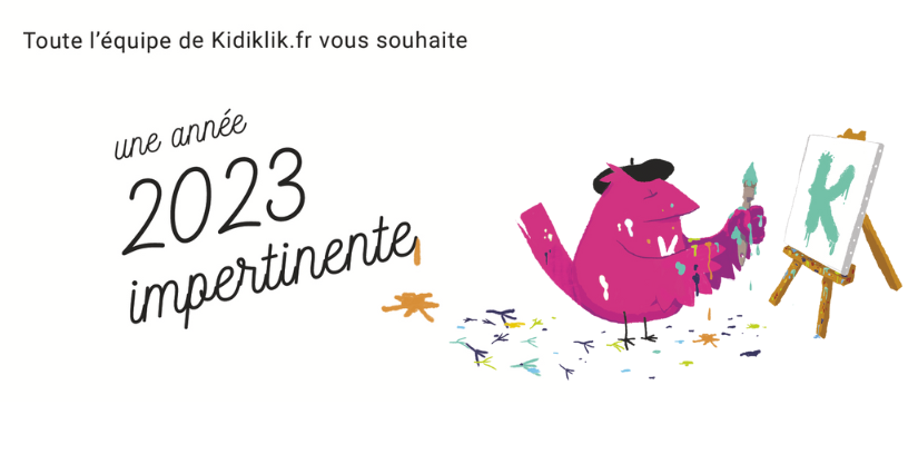 Alors pour 2023, finie la routine, adieu le train-train, on vous souhaite une foule de bons moments partagés. Et pour vous aider à les vivre, toute l’équipe de Kidiklik sera au rendez-vous pour trouver, tout au long de l’année, de nouvelles idées !